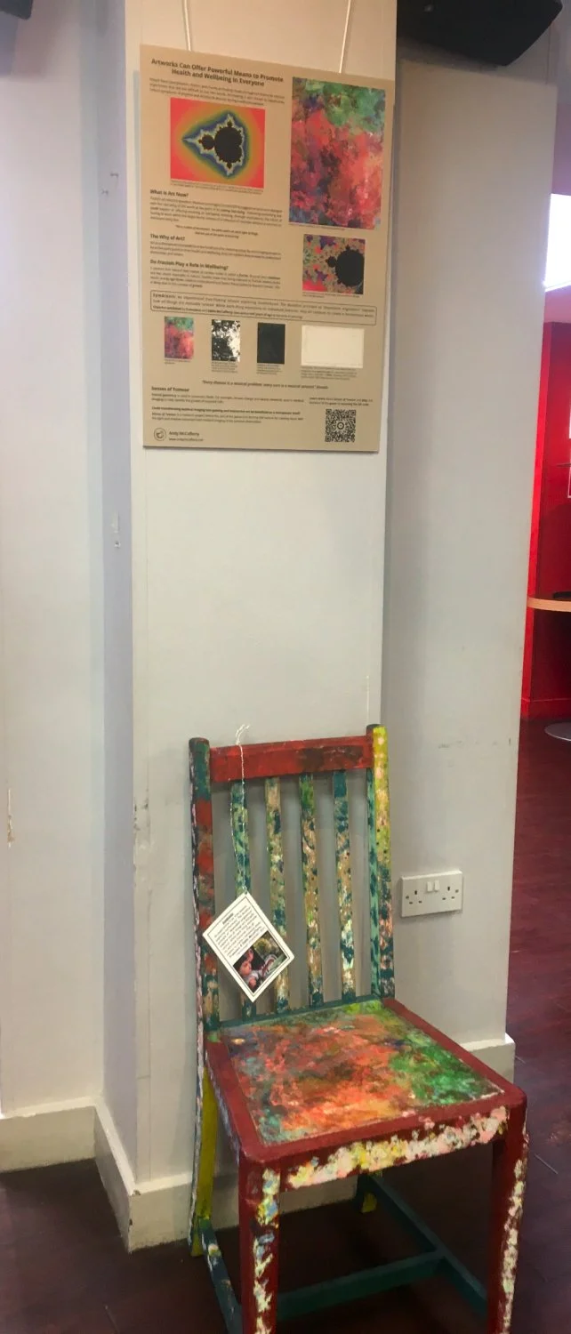 Research poster presented alongside and in response to chair artwork, Symbiosis, 2021. The poster presents original interdisciplinary practice, exploring relationships between art and science, and its role in wellbeing. It is an addition to the ongoing project Senses of Tumour; exploring the creative use of digital image processing techniques, and can be seen as both a testing, and teaching device.